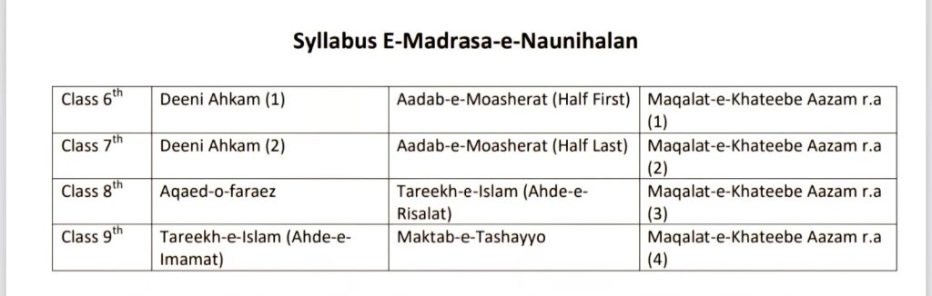 Syllabus Books of Naunihalan